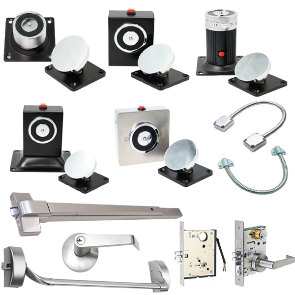 • Locking hardware, such as Electric door strikes, Bolt locks, Shear locks, Rim Locks and Electromagnetic locks.