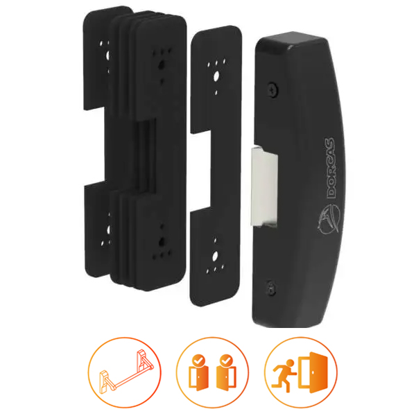 For evacuation routes and emergency exits, Dorcas provides specialized electric strikes designed to comply with European safety standards (EN 13637 and EN 14846). The primary goal is to ensure that doors release instantly under pressure or during a power failure to allow safe passage.