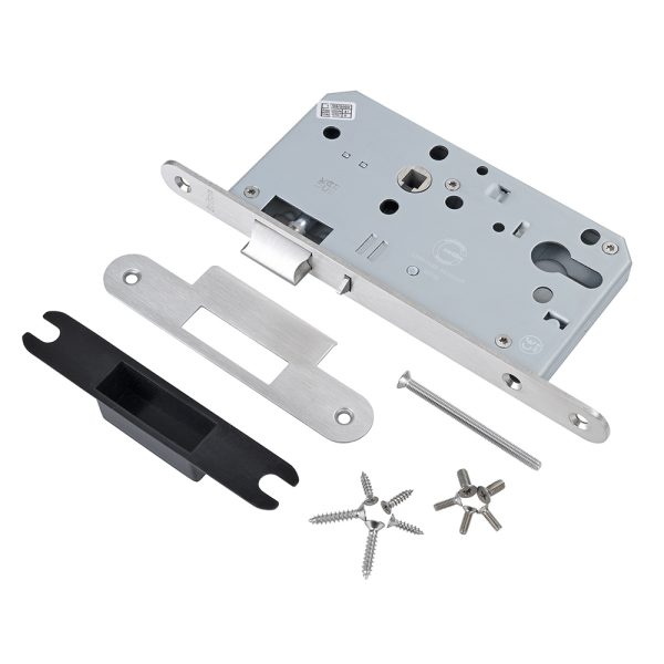 A euro profile cylinder sashlock suitable for lockable doors with lever furniture to withdraw the latchbolt.